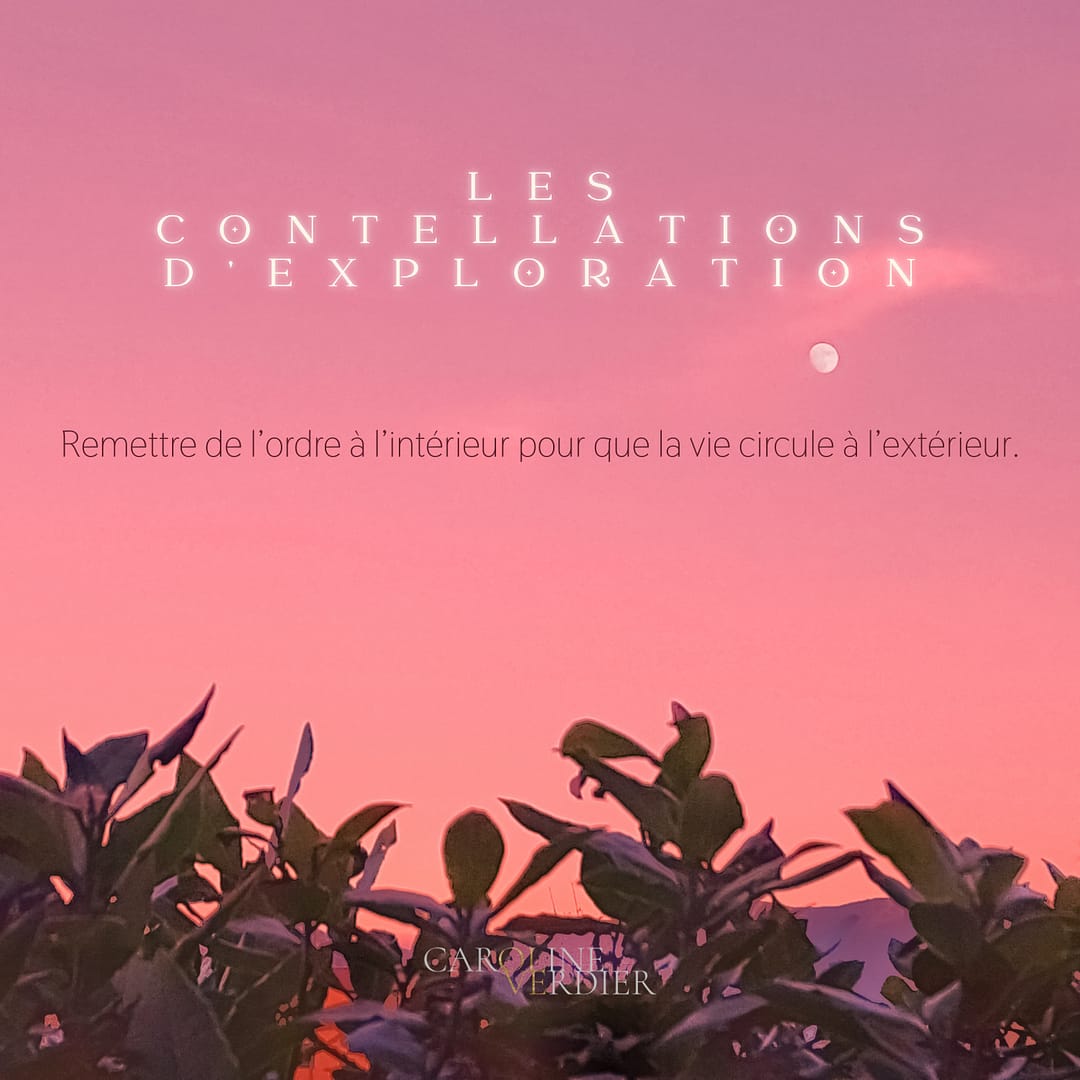 Chaque constellation dure environ 2 heures et a lieu en ligne (sur Zoom). Je commence par exposer le thème du jour avec un angle précis. Puis chaque participante exprimera son intention individuelle avec le thème. J’ouvrirai alors le champ de la constellation en posant une intention générale et je guiderai la constellation. Il y a deux possibilités de participer à la constellation : en tant que représentante ou observatrice. Un temps de partage à la fin de la constellation est prévu pour que chacune puisse partager ses prises de conscience et les intégrer.