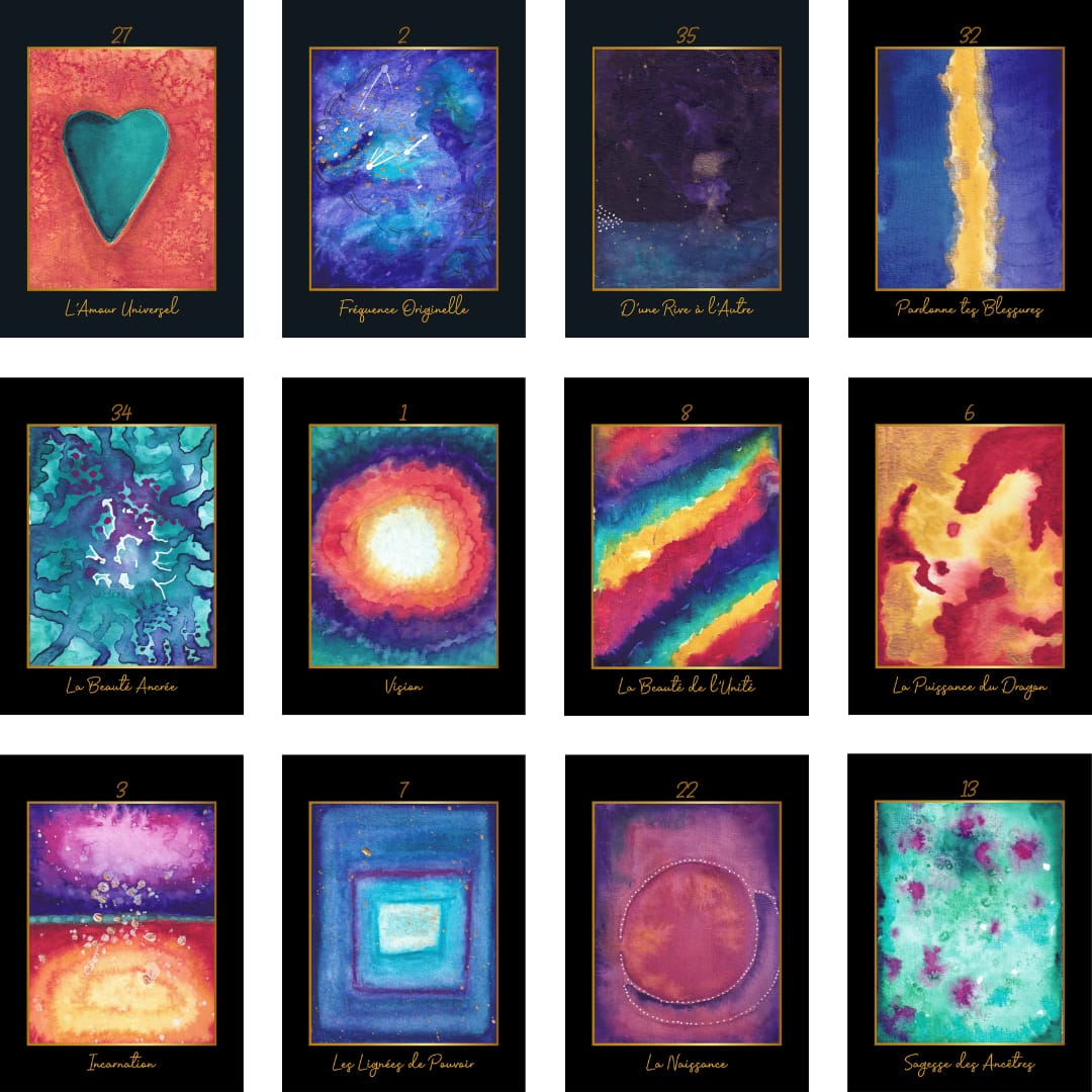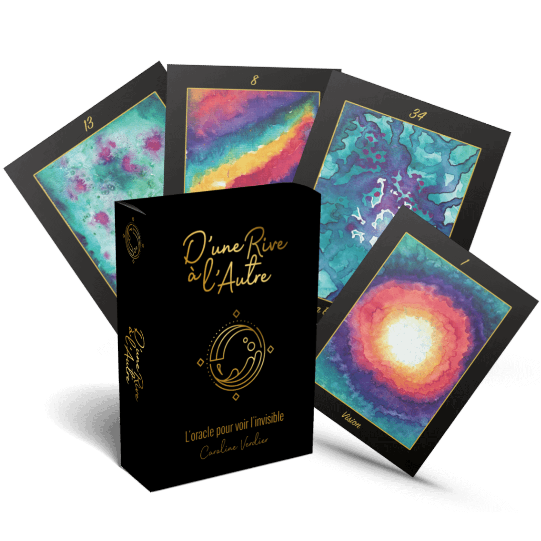 L’Oracle D’une Rive à l’Autre porte en lui les énergies de ce processus créatif spirituel et donne l’élan de matérialiser ses idées et son art malgré les doutes et les peurs, par amour pour soi.